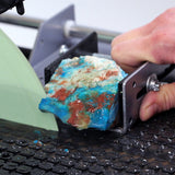 Save your fingers! Our saw vise attachments secure your rock, mineral and glass pieces while you cut so you don't have to put your hands near the saw blade. Simply bolt this accessory on your Hi-Tech Diamond saw machine, secure your material, then manually advance the carriage to feed your material evenly into the saw blade. Get safe, precise cuts every time! Made exclusively for the Hi-Tech Diamond 10″ slab saw.