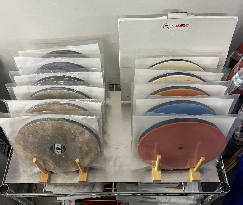 6" and 8" diameter laps are available in a large variety of different diamond grits. All laps have 1/2" arbor holes.